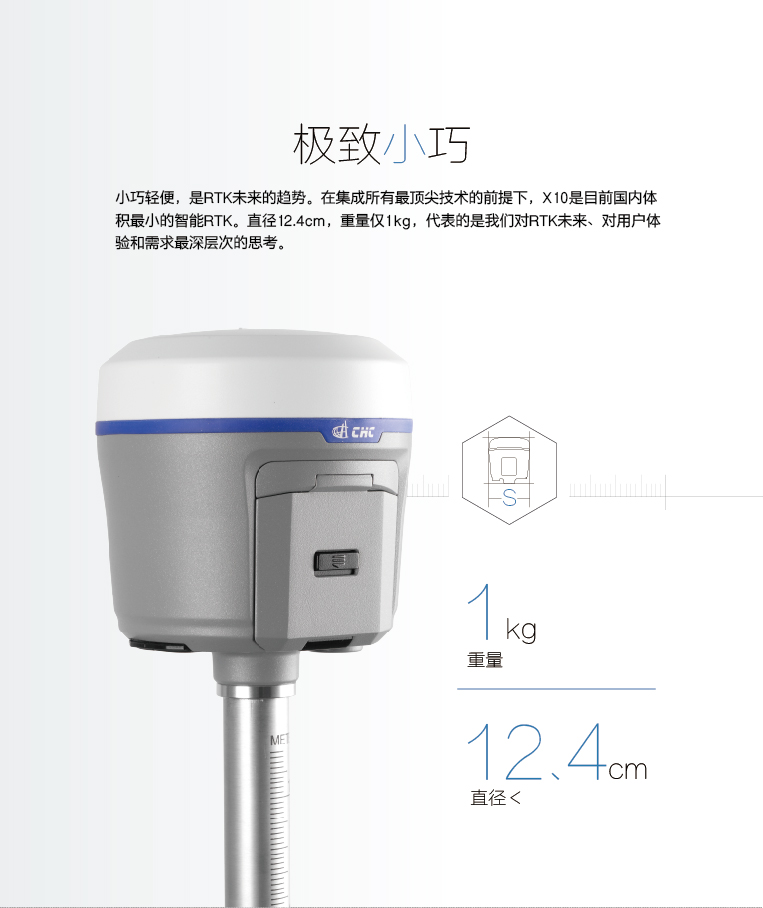 華測X10 智能RTK,是RTK領(lǐng)域內(nèi)的一次大膽的進(jìn)化。它精致小巧但大有可為,快速精準(zhǔn)的測量,堅(jiān)固抗摔的材質(zhì),持久耐用的續(xù)航,和智能強(qiáng)悍的配置,為用戶帶來全新的測量體驗(yàn)。